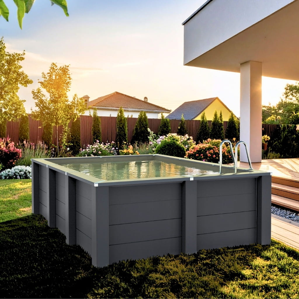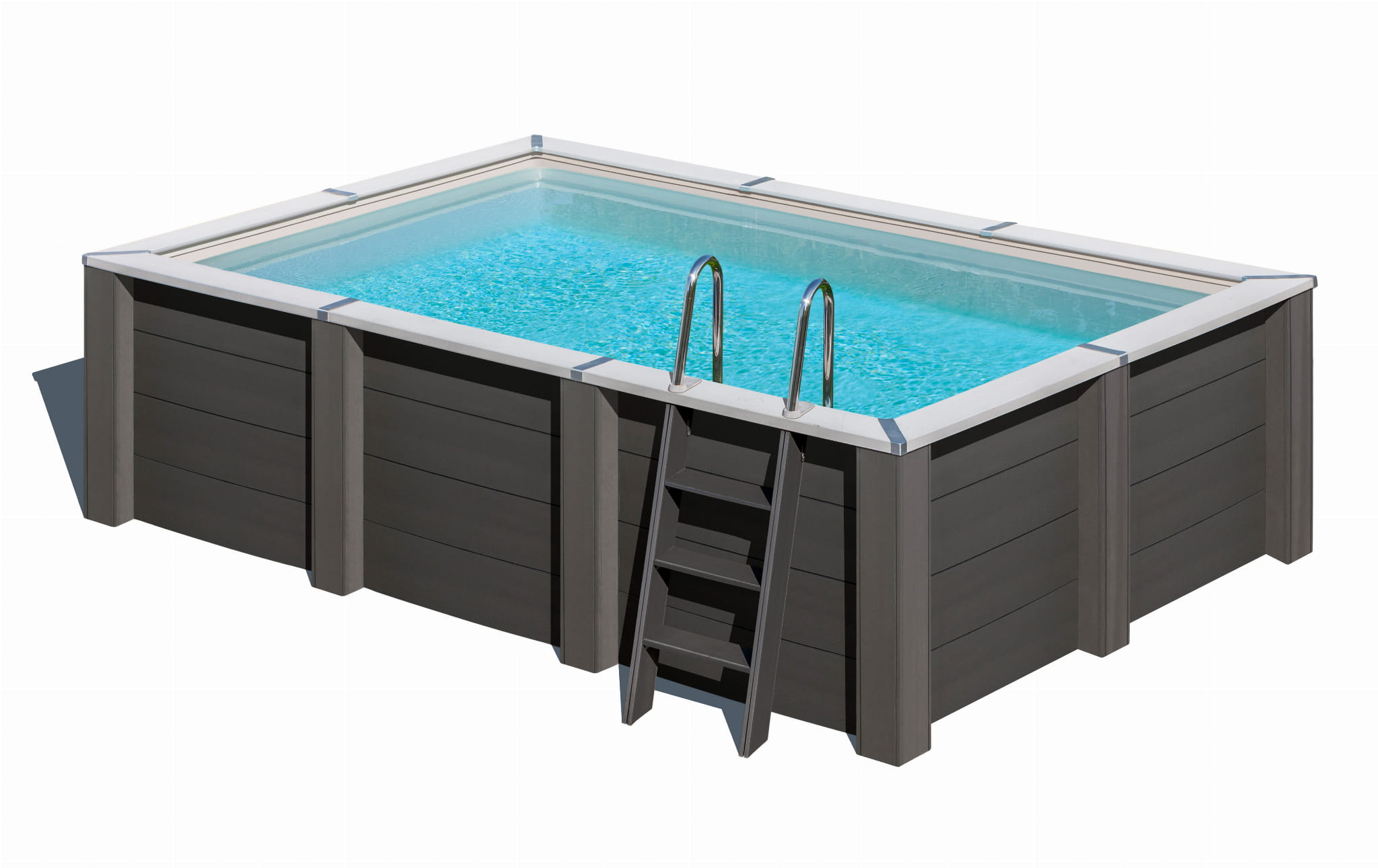 Ściany basenu wykonane są ze zbrojonych paneli kompozytowych, łączonych profilami ze szczotkowanego aluminium. Dno oraz boki wyłożone są odporną na promieniowanie UV folią PVC o grubości 0,6 mm. Całość uzupełniają wykończenia aluminiowe, drabinka ze stali nierdzewnej oraz kompozytowe schodki zewnętrzne.