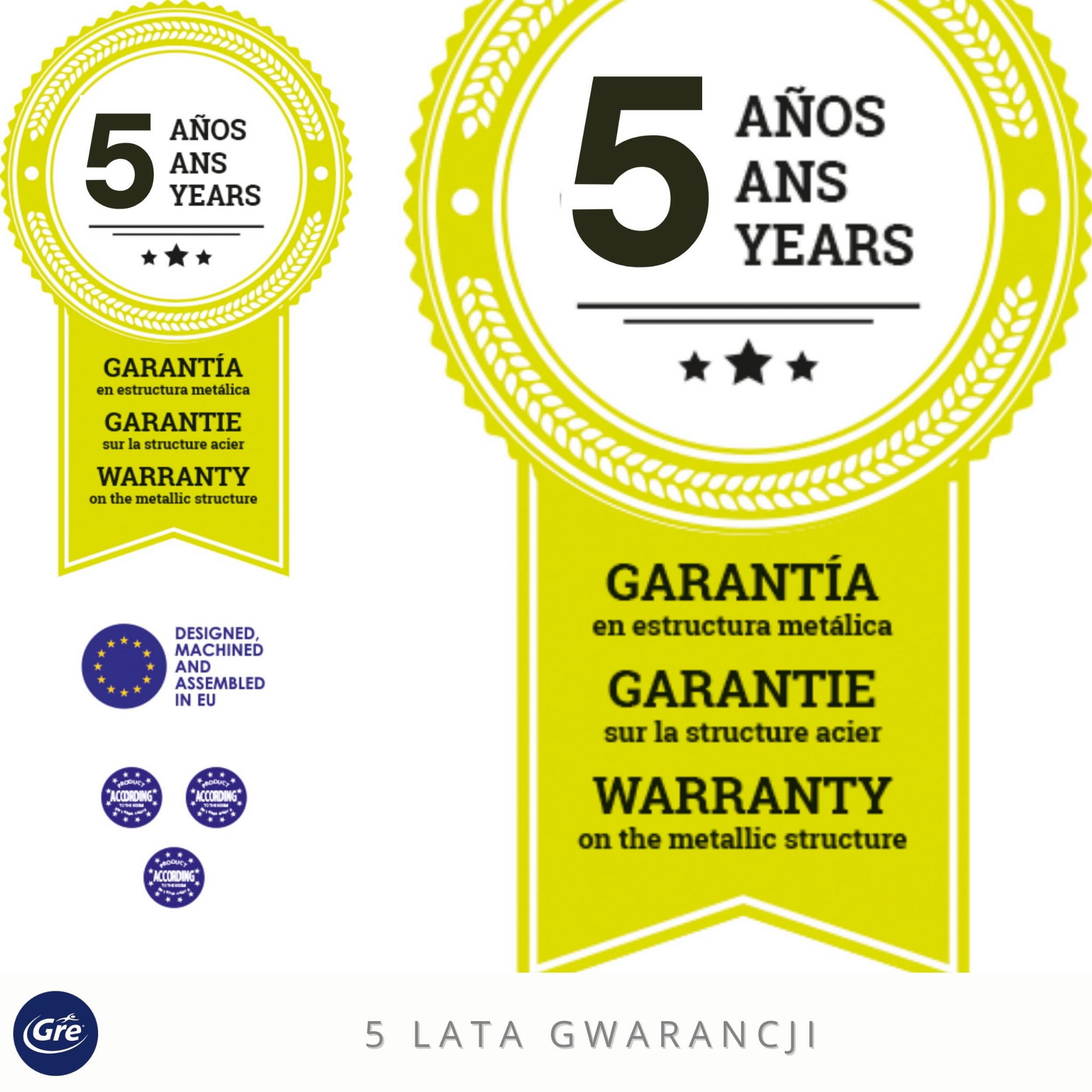 Gwarancja: 5 lat na konstrukcję, 2 lata na pozostałe elementy