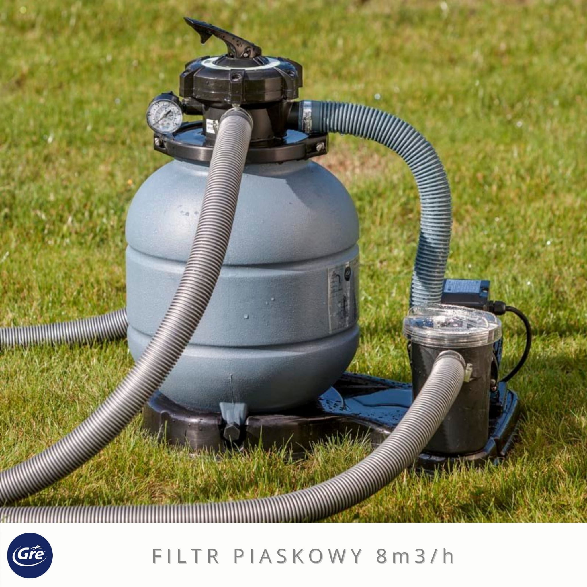 - zestaw filtracyjny z filtrem piaskowym oraz pompą o wydajności 8m3/h,