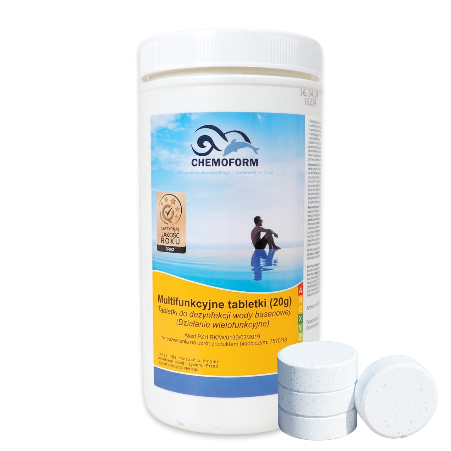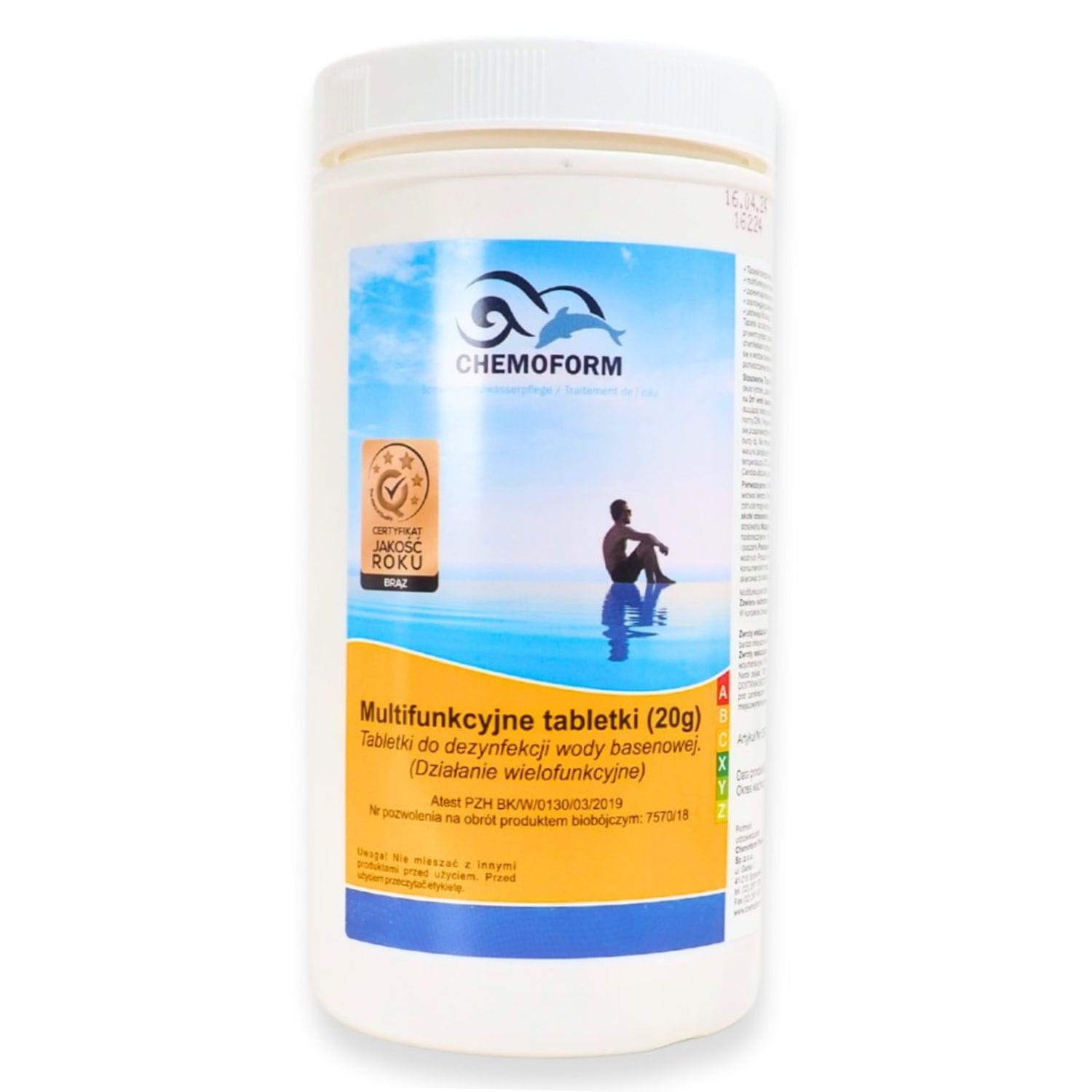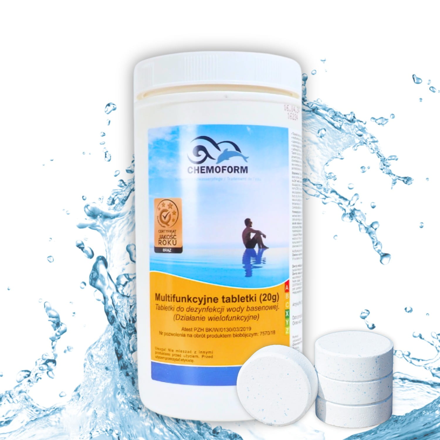 CHEMOCHLOR MULTITABLETKI 20G 1kg – profesjonalna pielęgnacja basenu prosto od renomowanej niemieckiej firmy Chemoform. Te wielofunkcyjne tabletki chlorowe to prawdziwy game-changer w dbaniu o krystalicznie czystą wodę. Dzięki zawartości około 90% aktywnego chloru, a także dodatkowi koagulantu, stabilizatora pH i środka glonobójczego, oferują kompleksowe rozwiązanie dla Twojego basenu. Dlaczego warto je wybrać?