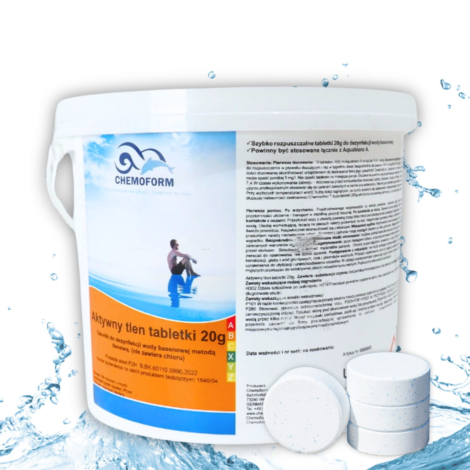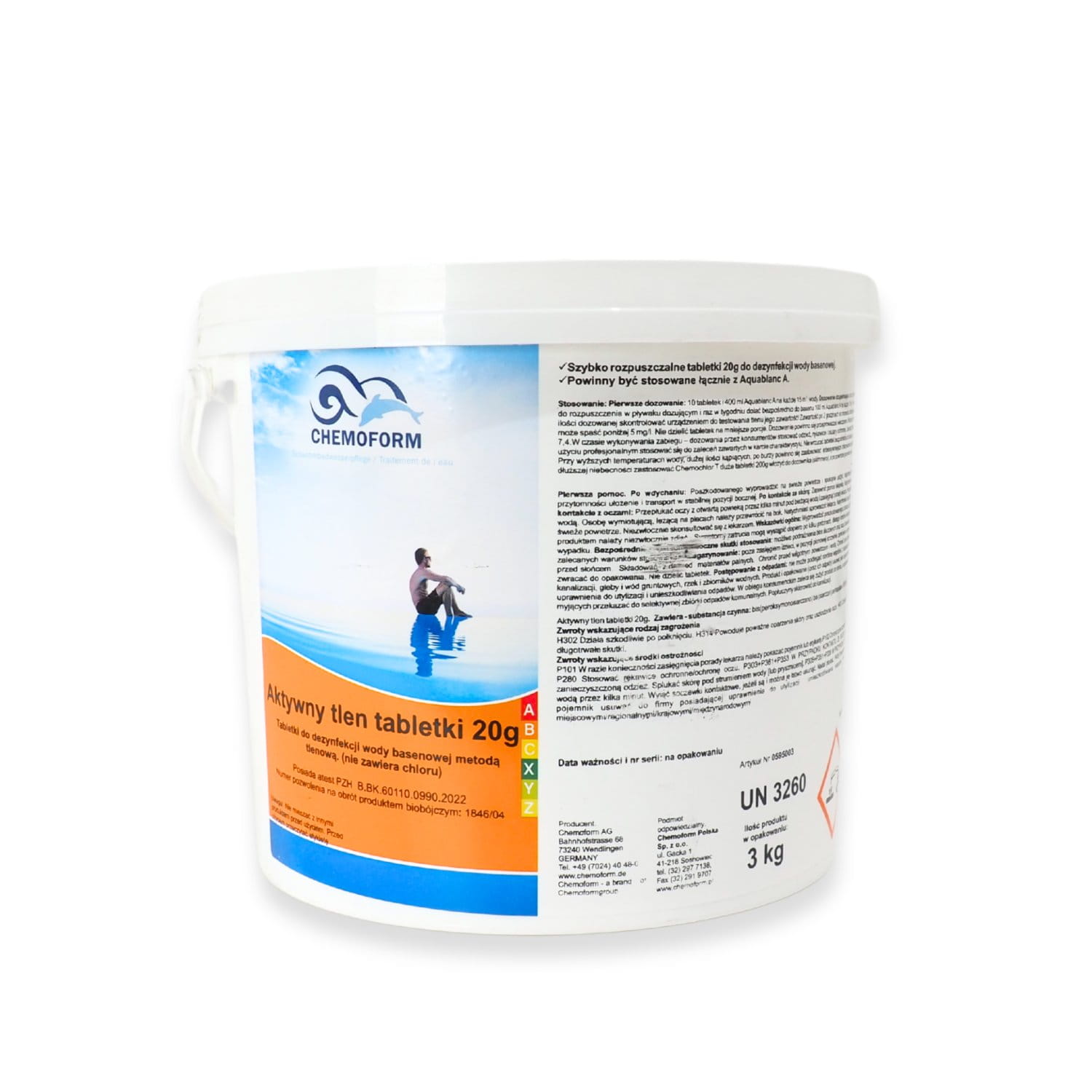 Chemoform Aktywny Tlen w tabletkach 20g 3kg – bezchlorowa dezynfekcja wody w basenach prywatnych i wannach SPA! Ten wyjątkowy produkt od renomowanej niemieckiej firmy Chemoform AG to idealna alternatywa dla metod chlorowych. Zawiera 50 szybko rozpuszczalnych tabletek tlenowych (20g), które w połączeniu z aktywatorem Aquablanc A (efekt synergii) zapewniają krystalicznie czystą wodę bez kompromisów.