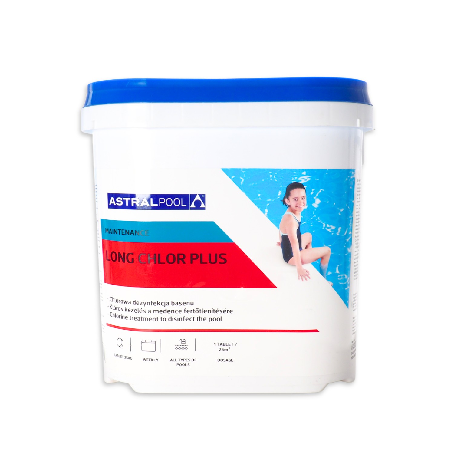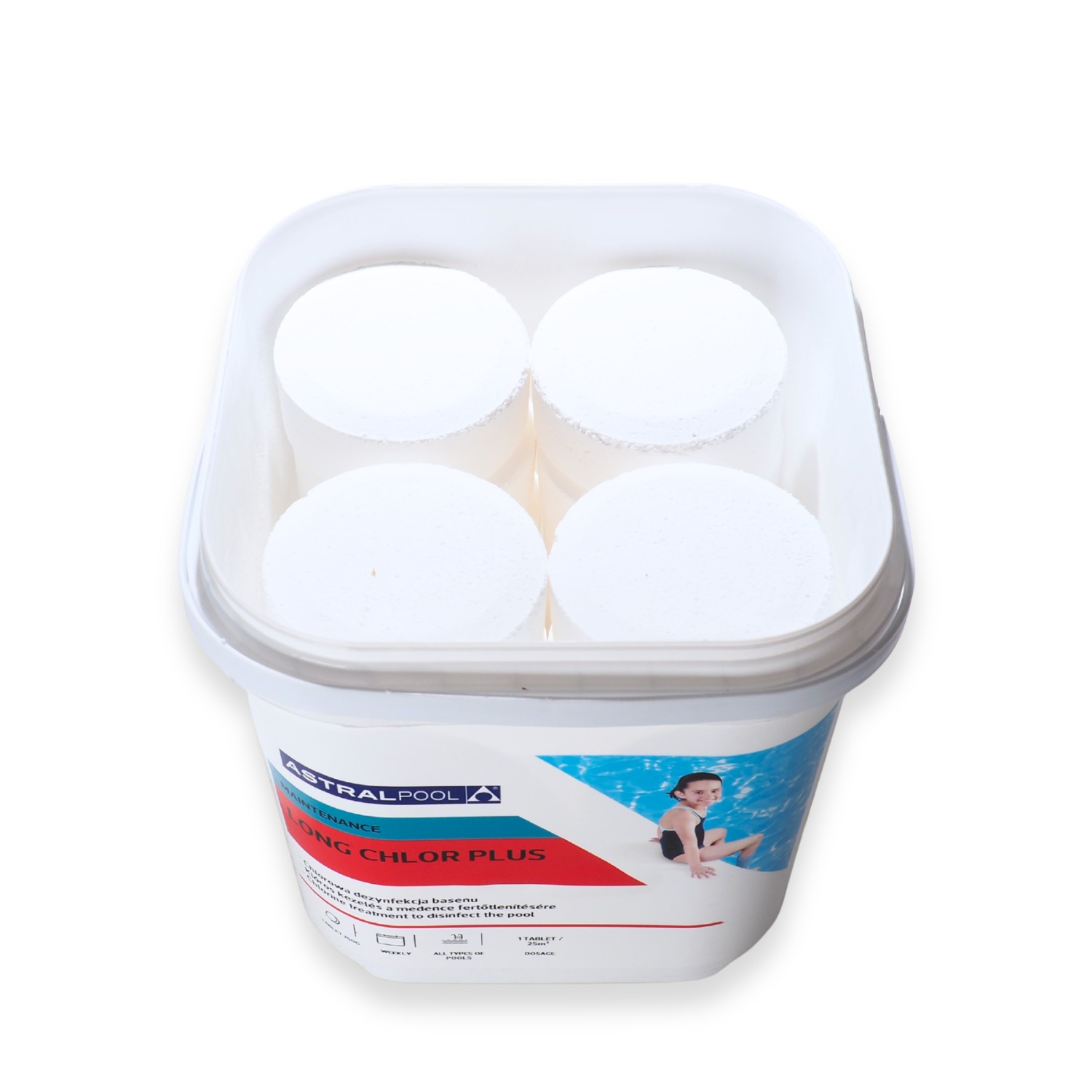 AstralPool Long Clor Plus 5 kg to klasyczny, wolno rozpuszczający się chlor w tabletkach, przeznaczony do regularnej dezynfekcji wody basenowej. Idealny wybór dla osób, które chcą samodzielnie kontrolować parametry wody i stosować osobno inne środki (np. antyglon, korektę pH czy flokulację).