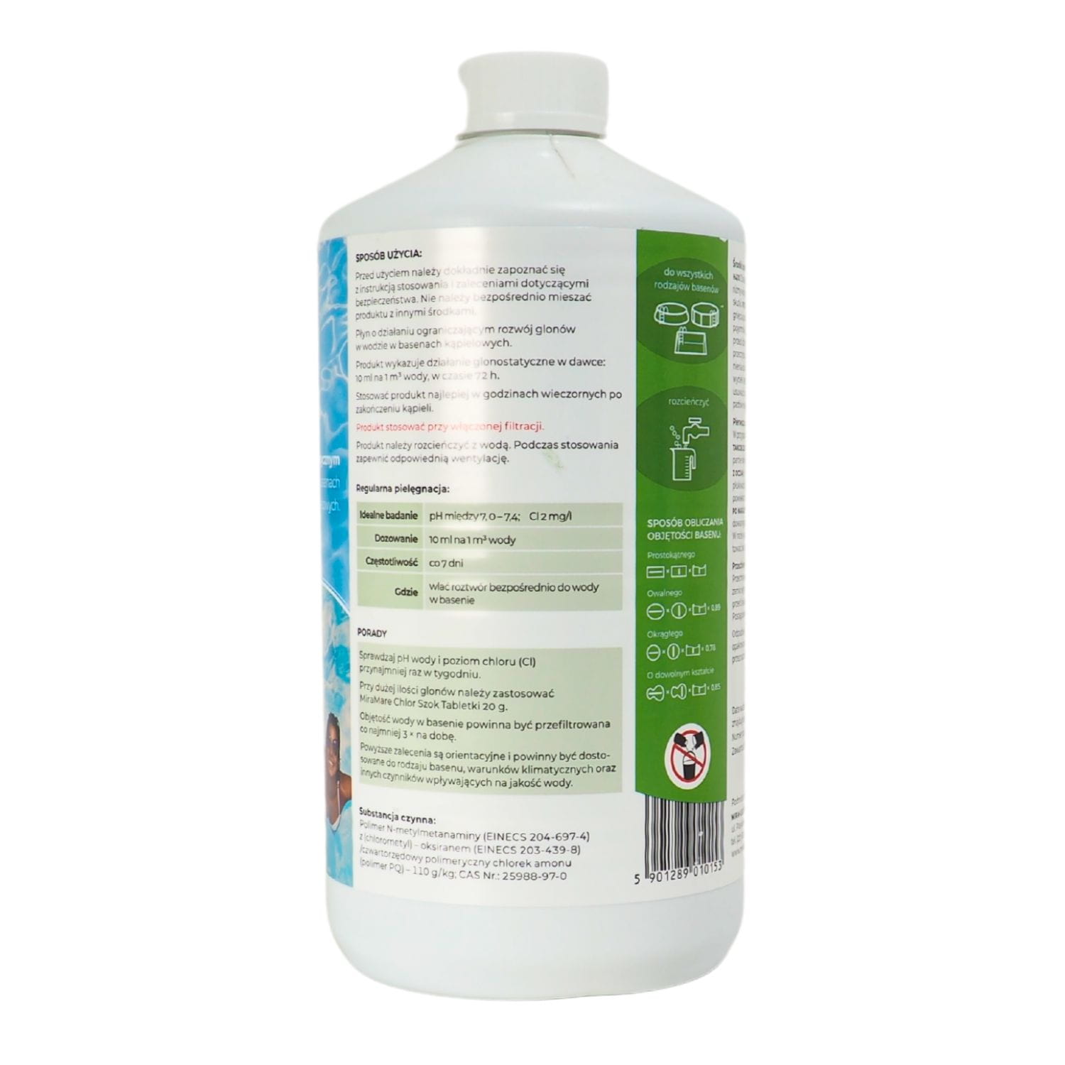 W przypadku pojawienia się glonów: 400ml na 10m3