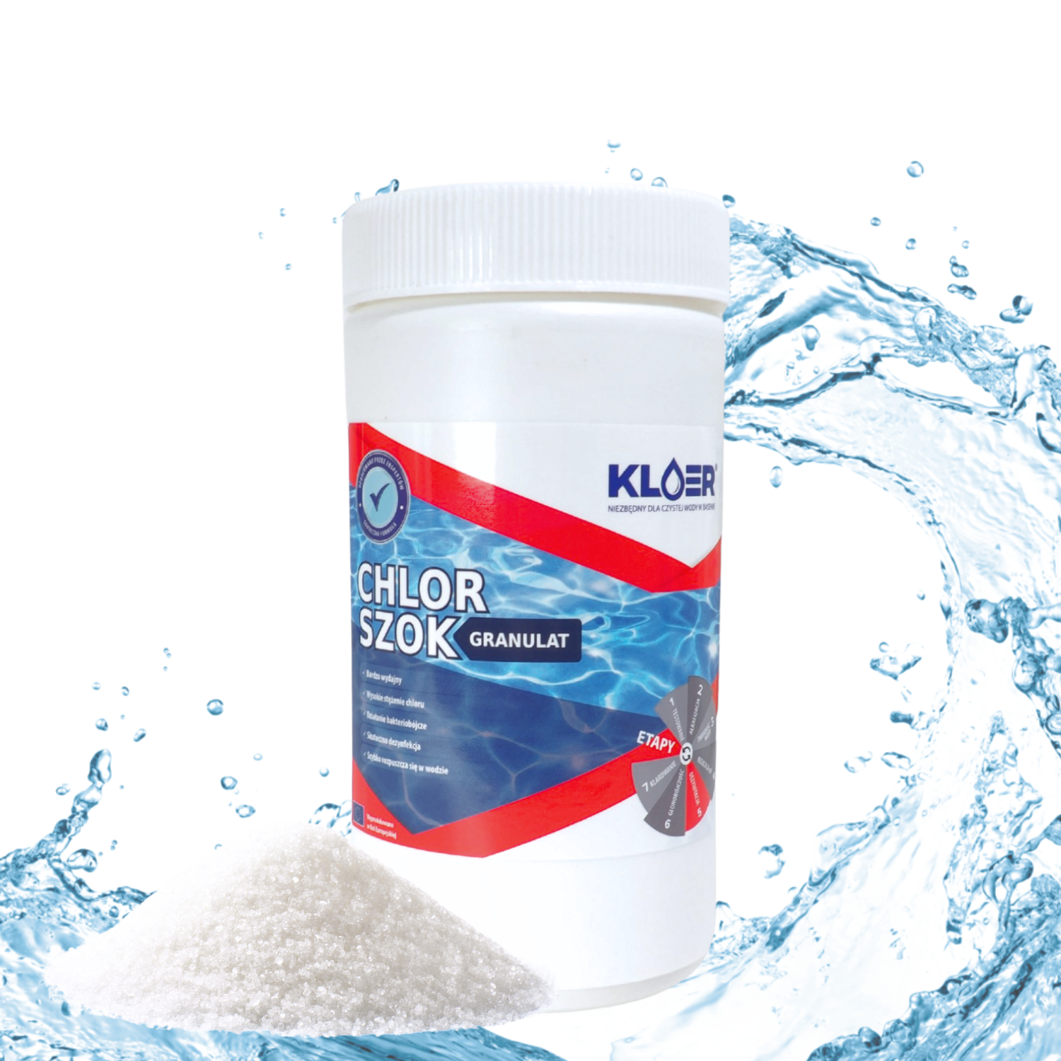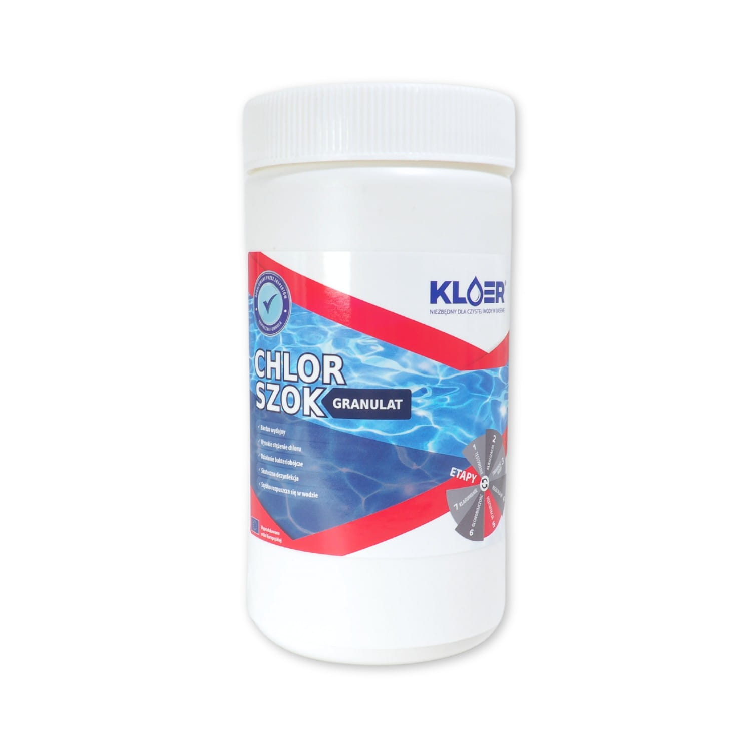 Kloer Chlor Aktywny w Granulacie to doskonały produkt do dezynfekcji wody basenowej, produkowany w Europie z zachowaniem najwyższych standardów jakości. Jego wyjątkowo wysokie stężenie chloru sprawia, że jest niezwykle skuteczny w zwalczaniu bakterii, wirusów oraz glonów, zapewniając krystalicznie czystą wodę w basenie.