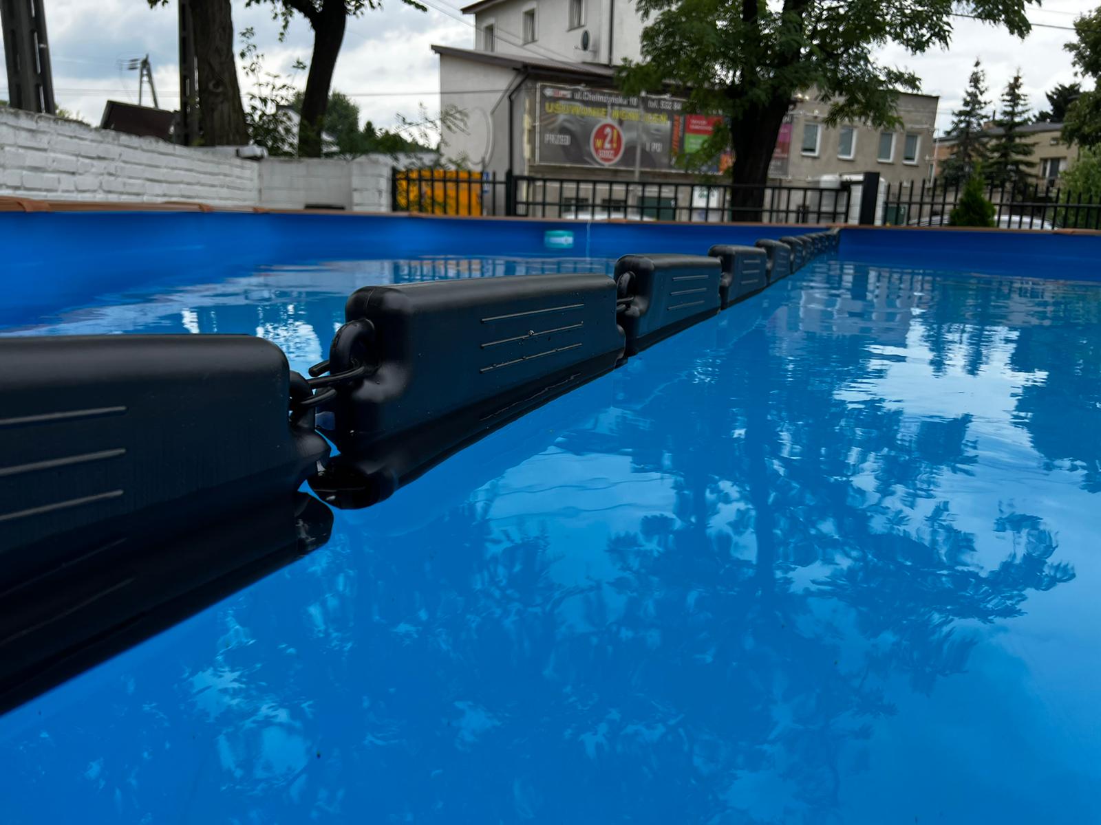 - Łączenie pływaków ze sobą i przeciągnięcie ich przez środek lub po przekątnej basenu - tego rozwiązania dotyczy ilość pływaków w tym zestawie