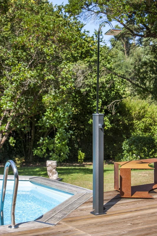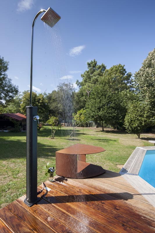 Instalacja prysznica słonecznego w ogrodzie lub przy basenie jest bardzo prosta i pozwala szybko cieszyć się darmową ciepłą wodą.