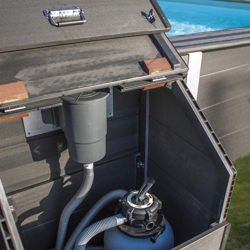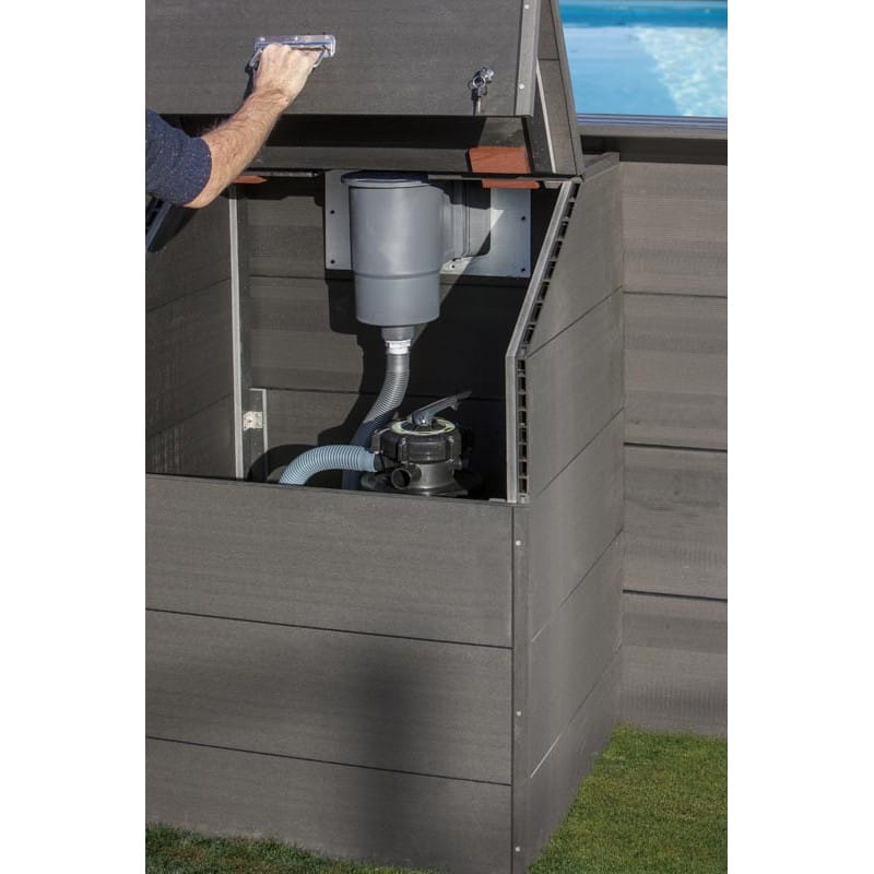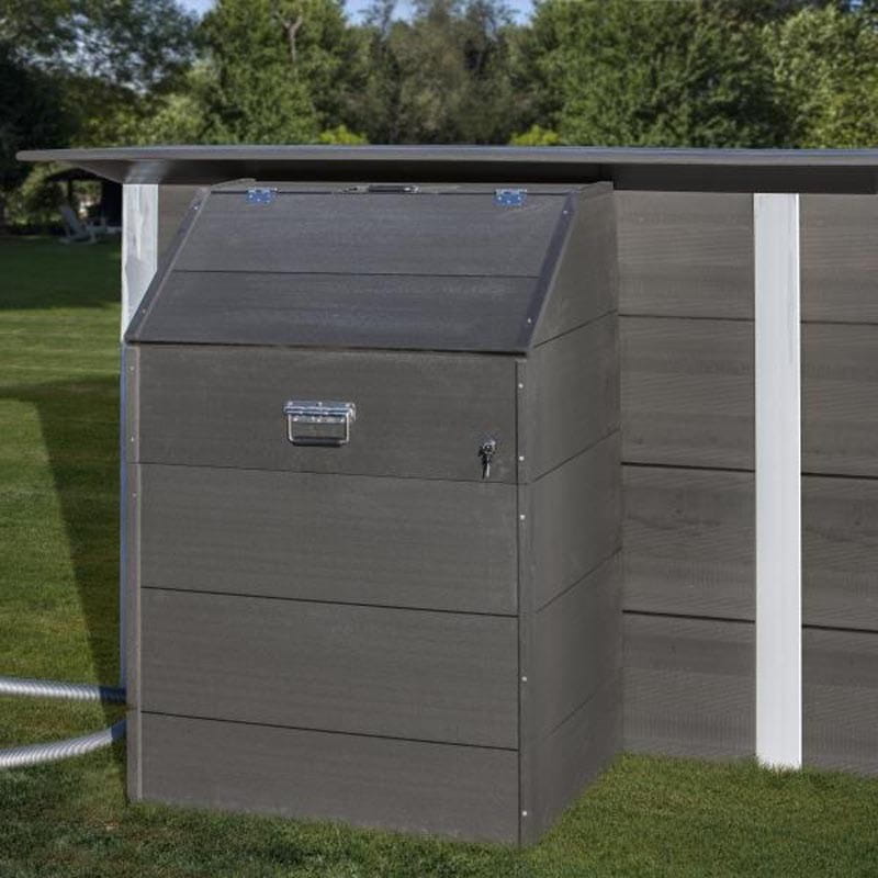 Skrzynia, której wysokość jest idealnie dopasowana do wysokości kompozytowych basenów Avantgarde firmy GRE. Skrzynię tę zaprojektowano tak, aby zapobiegać uszkodzeniu różnych akcesoriów do basenów (filtry, węże itd.), które zazwyczaj trzymamy na zewnątrz, narażając je na wpływ czynników zewnętrznych, pogody, temperatur. Bardzo estetyczny wygląd, nowoczesny design i dopasowanie stylem do kompozytowych basenów GRE powoduje, że stanowi to jednolitą wyglądem całość.